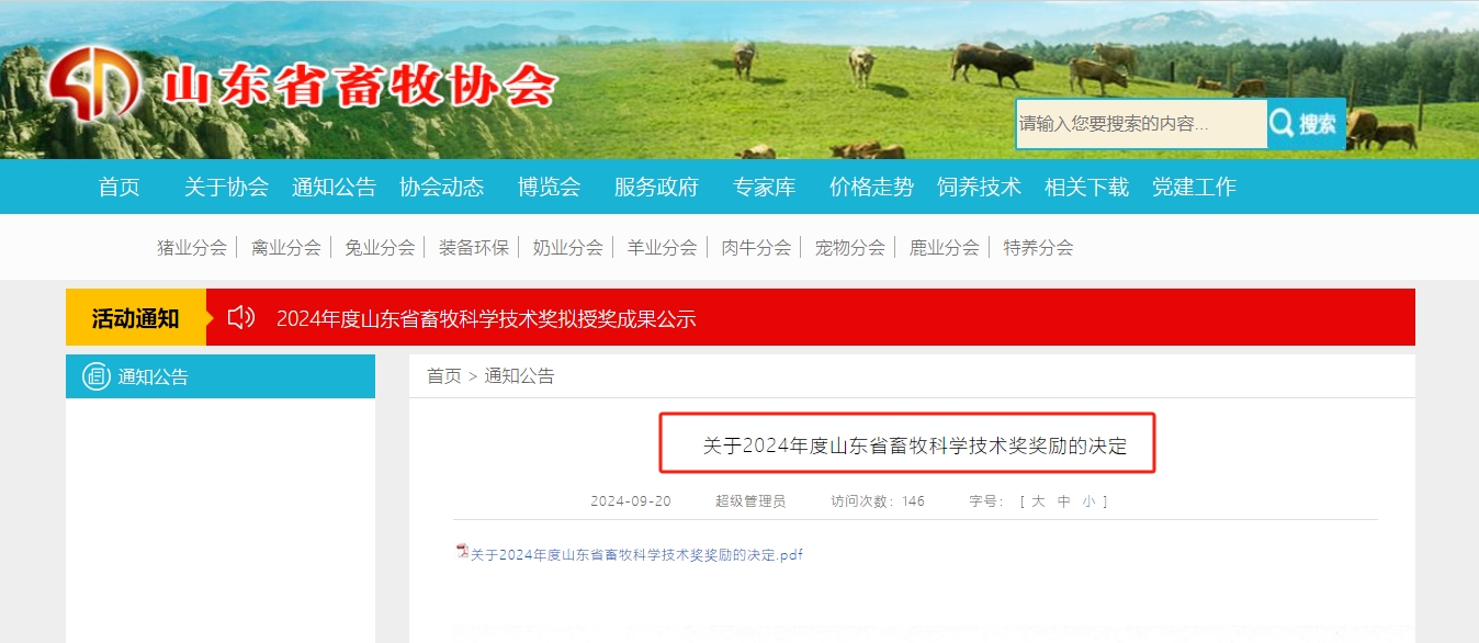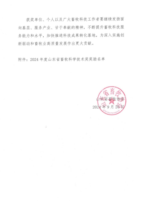 健源生物榮獲山東省畜牧科學(xué)技術(shù)獎(jiǎng)科學(xué)技術(shù)成果獎(jiǎng)一等獎(jiǎng)