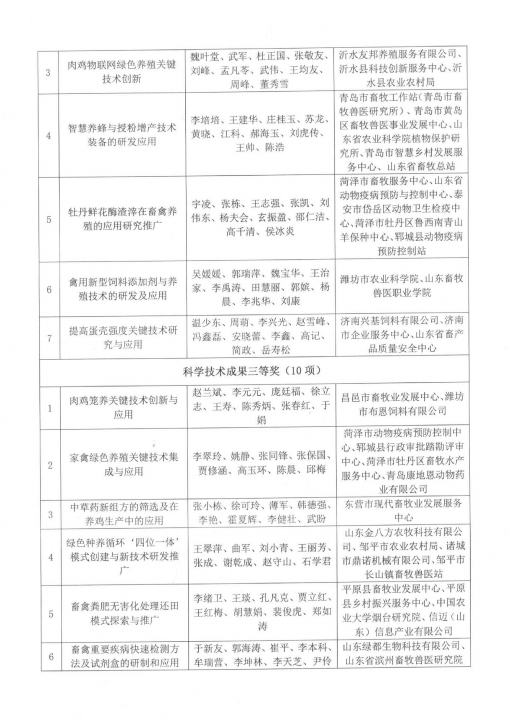 按照《山東省畜牧科學(xué)技術(shù)獎(jiǎng)獎(jiǎng)勵(lì)管理辦法》的規(guī)定,為表彰獎(jiǎng)勵(lì)在我省畜牧技術(shù)科技研發(fā)和推廣中作出貢獻(xiàn)的單位和個(gè)人,經(jīng)過評審,評選出山東省畜牧科學(xué)技術(shù)獎(jiǎng)技術(shù)成果獎(jiǎng)一等獎(jiǎng)5個(gè),二等獎(jiǎng)7個(gè),三等獎(jiǎng)10個(gè)。