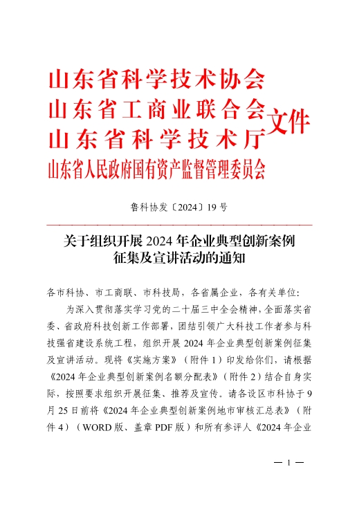 2024年企業(yè)典型性創(chuàng)新案例征集及宣講活動(dòng),是根據(jù)中國科協(xié)要求,按照《關(guān)于組織開展2024年企業(yè)典型創(chuàng)新案例征集及宣講活動(dòng)的通知》(魯科協(xié)發(fā)〔2024〕19號)有關(guān)規(guī)定,依托園區(qū)(企業(yè))科協(xié)組織,對在科學(xué)研究、技術(shù)應(yīng)用、科技推廣、技術(shù)創(chuàng)新、成果轉(zhuǎn)化等工作中取得優(yōu)異成績、具有示范意義的典型案例進(jìn)行推薦,通過講述創(chuàng)新故事,弘揚(yáng)企業(yè)家精神、科學(xué)家精神、工匠精神,激發(fā)創(chuàng)新活力。