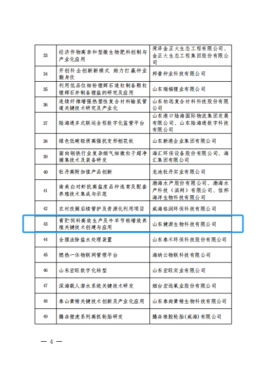 近日,山東省科學(xué)技術(shù)協(xié)會公示2024年山東省企業(yè)典型創(chuàng)新案例入選名單,山東健源生物科技有限公司的“青貯飼料高效生產(chǎn)及牛羊節(jié)糧增效養(yǎng)殖關(guān)鍵技術(shù)創(chuàng)建與應(yīng)用”項(xiàng)目入選山東省典型創(chuàng)新案例-技術(shù)創(chuàng)新組。