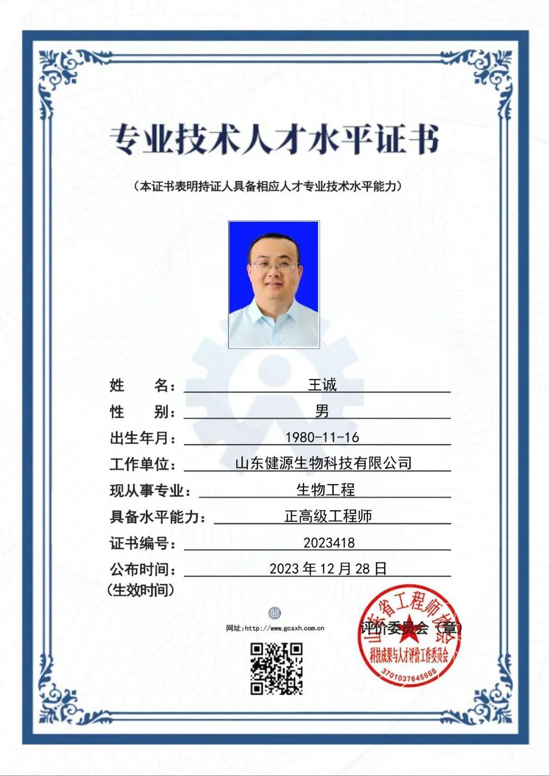 董事長王誠榮獲正高級工程師專業(yè)技術人才水平證書