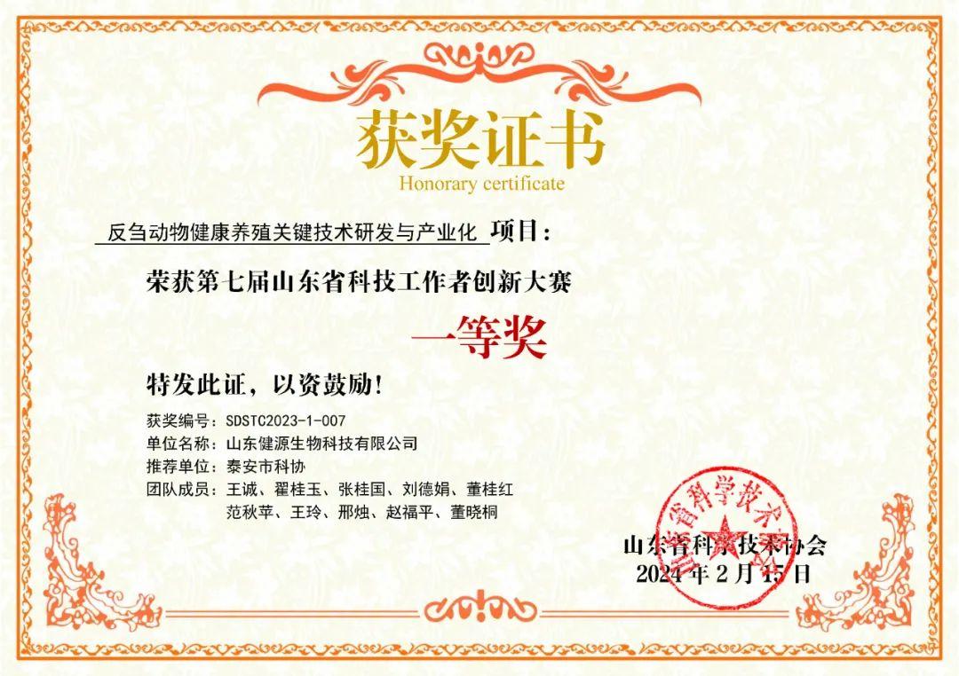 健源生物項目榮獲山東省第七屆科技工作者創(chuàng)新大賽一等獎