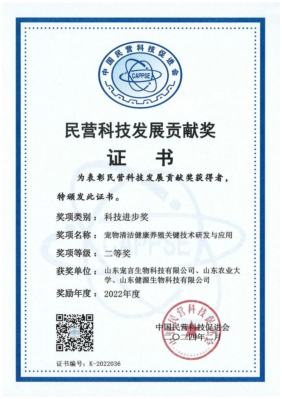 健源生物榮獲2022年度民營科技發(fā)展貢獻獎科技進步獎二等獎