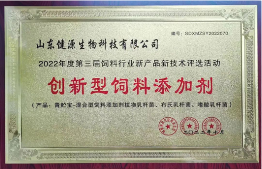 祝賀山東健源生物(青貯寶)產品榮獲“2022年度創新型飼料添加劑”榮譽稱號