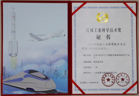祝賀山東健源生物參與完成的《高效飼草料生產關鍵技術裝備的研發與產業化》項目榮獲2022年度機械工業科學技術獎科技進步獎二等獎