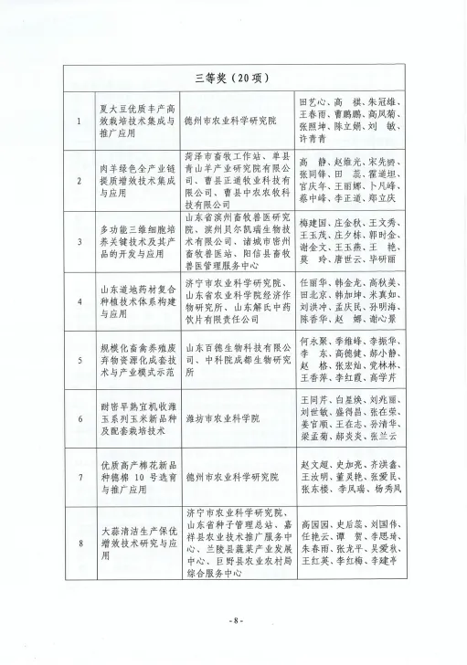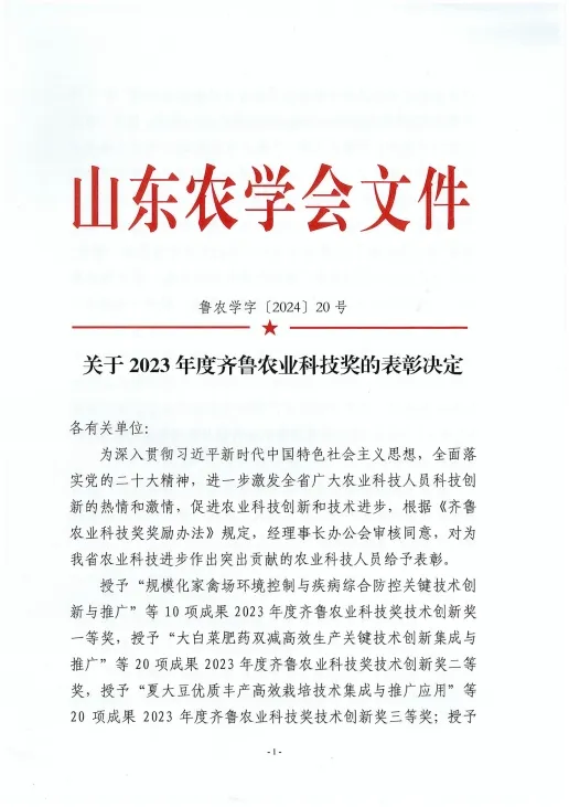 齊魯農(nóng)業(yè)科技獎是山東農(nóng)學(xué)會設(shè)立的面向全省農(nóng)業(yè)行業(yè)的綜合性科學(xué)技術(shù)獎,主要獎勵為全省農(nóng)業(yè)科學(xué)技術(shù)進步和創(chuàng)新作出突出貢獻的集體和個人,對于調(diào)動廣大農(nóng)業(yè)科技工作者的積極性和創(chuàng)造性,促進我省農(nóng)業(yè)科技創(chuàng)新,不斷提升產(chǎn)業(yè)發(fā)展水平起到了積極的推動作用。